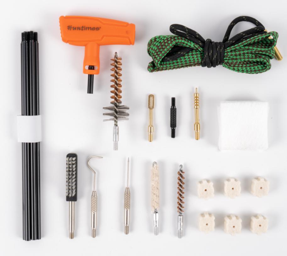 El kit de limpieza de escopetas Huntimes® es un sistema completo para mantener su arma limpia y disparando con precisión. Las piezas de cobre, las varillas de acero y los cepillos de bronce fosforado protegen los orificios. El kit de limpieza de escopeta Huntimes® es un sistema de limpieza completo que viaja fácilmente con usted.