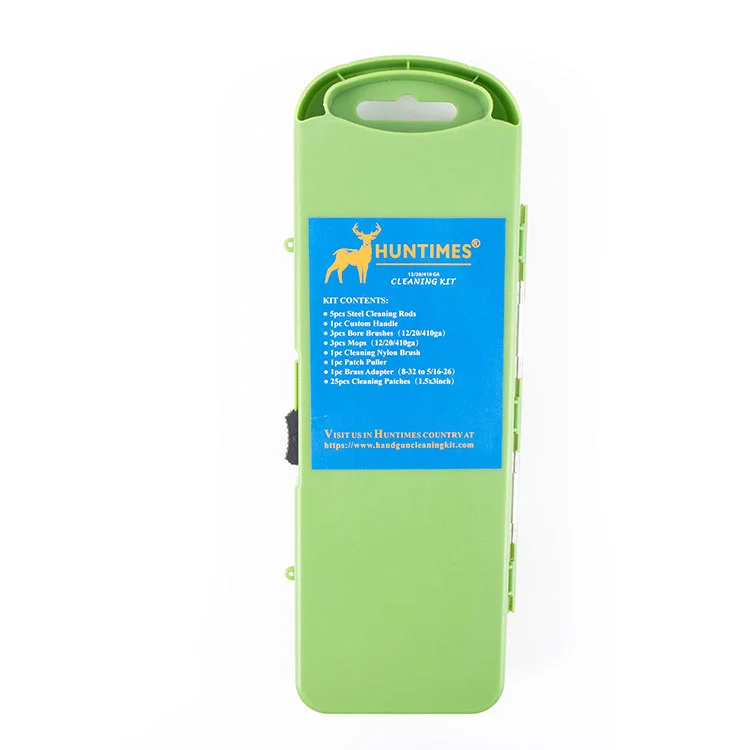 Proporcionamos un estuche de plástico portátil con bandeja blíster para el kit de limpieza de escopeta con mango 12/20/410GA. El kit incluye 5 varillas de limpieza de acero, un mango personalizado, 3 cepillos de calibre (12/20/410ga), 3 trapeadores (12/20/410ga), 1 cepillo de limpieza de nailon, 1 extractor de parches, 1 adaptador de latón (8-32 a 5/16-26) y 25 parches de limpieza (1,5x3 pulgadas). Este producto proporciona una solución integral para las necesidades de limpieza de armas. El mango personalizado garantiza un agarre cómodo durante la limpieza. El adaptador de latón permite reemplazar fácilmente los cabezales de limpieza, mientras que el extractor de parches ayuda a eliminar eficazmente los parches de limpieza. El tamaño de los parches de limpieza es de 1,5x3 pulgadas, que pueden llegar a lugares de difícil acceso.